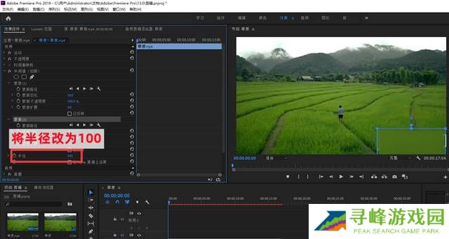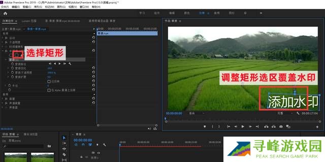 第二步 在左侧效果控件,点击【矩形】,然后调整矩形选区直到完全覆盖水印所在的位置。