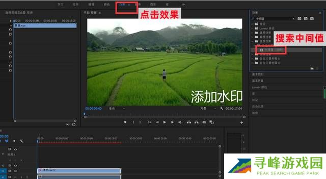 第一步 PR的所有操作都是新建一个项目,我们首先新建一个视频项目。然后点击【效果】,搜索【中间值】,并将其添加到视频中去。