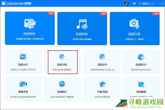 首先打开电脑上的“迅捷视频转换器”,看到软件·的第二行第二列的“视频分割”选项,点击选择。