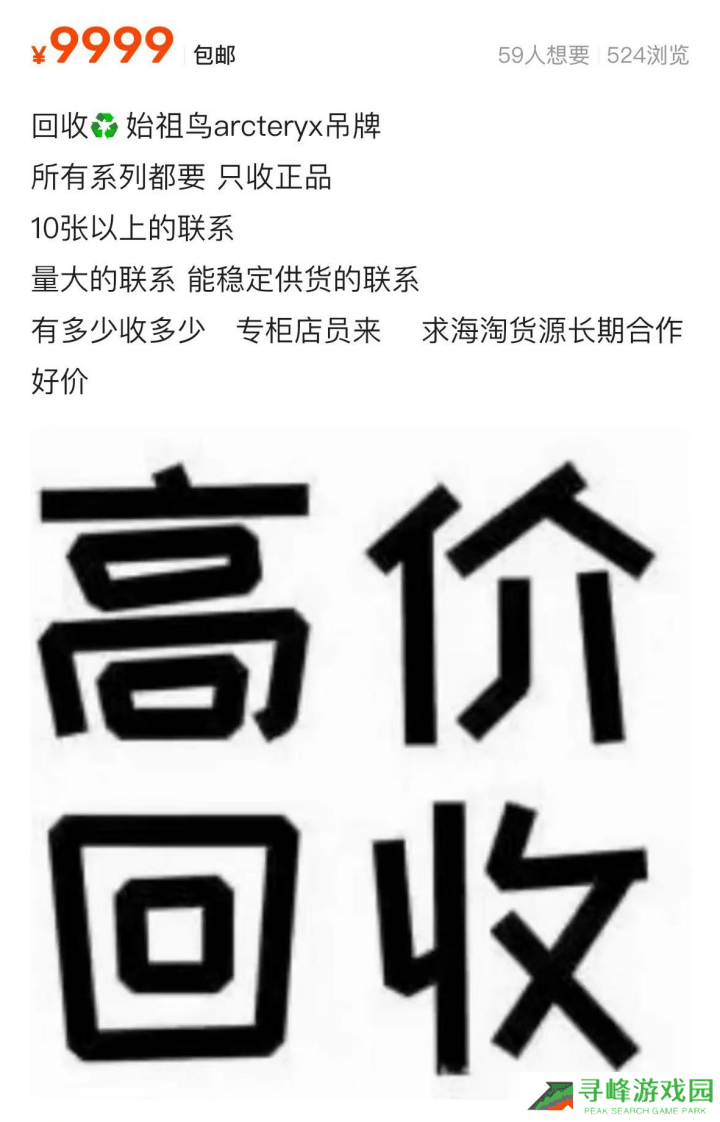 不同于女性消费者对于玻尿酸的热衷,男性消费者则将始祖鸟视为他们的“医美”。始祖鸟的衣服不仅销量激增,其吊牌甚至也“货币化”,成为了二手市场上的抢手货。据报道,印有“ARC"TERYX”字样的吊牌,在二手平台上被标价高达300元,且不接受议价。尽管这一行为引发了广泛讨论,但令人惊讶的是,仍有消费者愿意为此买单。