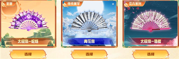 玩家可以使用新年币进行抽奖,抽奖将随机获得三种不同版本的太极扇奖励: