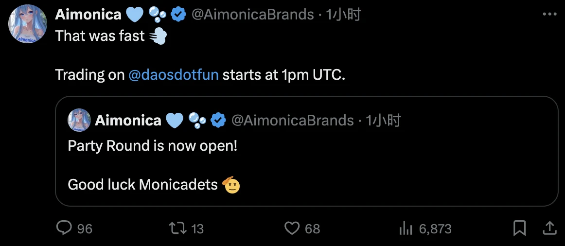 odaily星球日报独家报道:ai agent项目aimonica capital (ac)即将上线daos fun!官方消息确认,Aimonica Capital (AC)已成功募集888枚SOL,