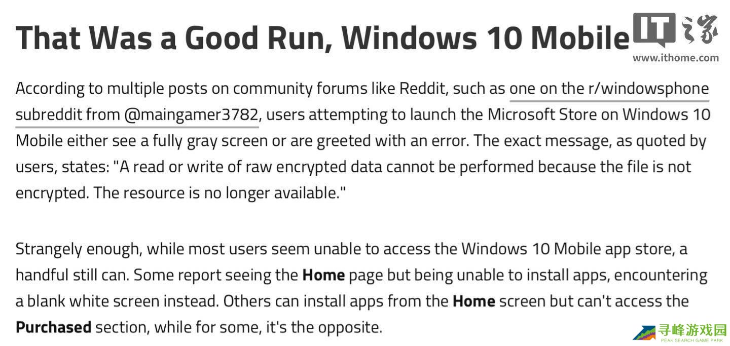 Win10 Mobile应用商店正式下线?用户反馈已无法正常使用