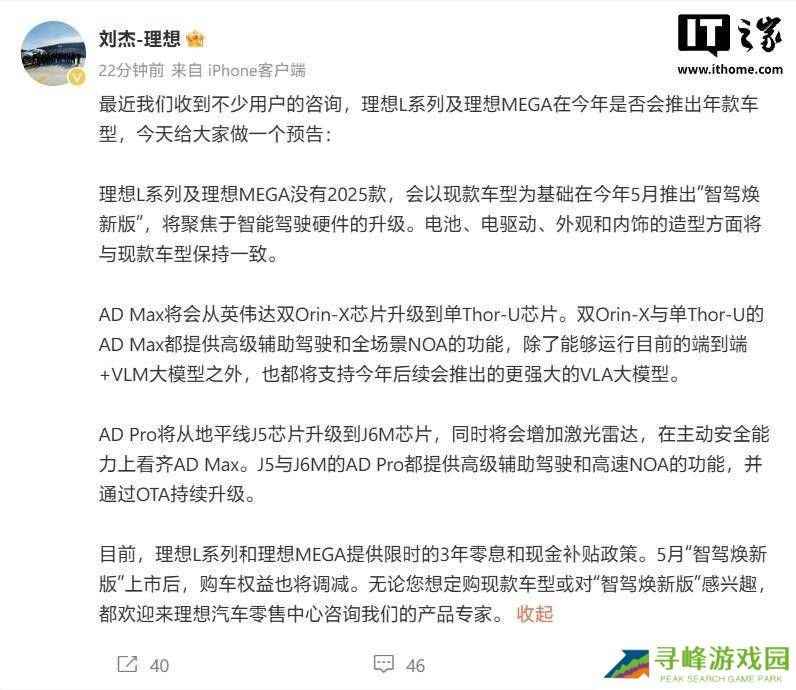 理想汽车L系列及MEGA:5月智驾升级,无2025款新车计划!