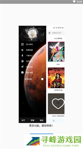 2、“快捷音乐播放功能”的设计,使音乐爱好者们在其中去浏览各页面更加迅速高效。