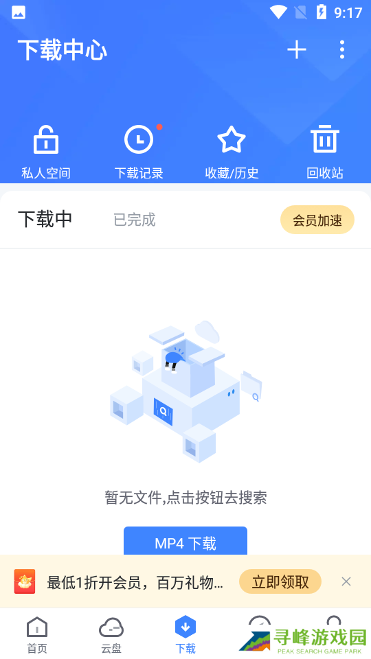 3、在打开的新页面中将链接复制进去点击下载即可,如需下载到云盘,可切换存储空间为云盘即可。