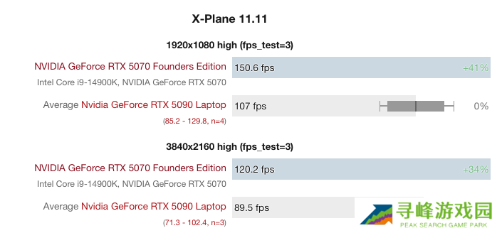 《黑神话:悟空》:在 4K 分辨率下 RTX 5090 移动版平均 27 帧,5070 桌面版平均 25 帧;在 1080P 分辨率下,两款显卡均为 57 帧