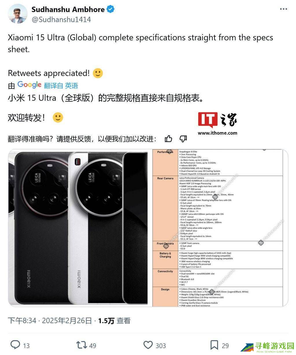 小米15 Ultra国际版曝光:骁龙8至尊版+徕卡四摄,电池容量略缩水