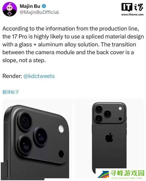 苹果iPhone 17 Pro新设计曝光:铝合金与玻璃拼接,相机模组大变样?