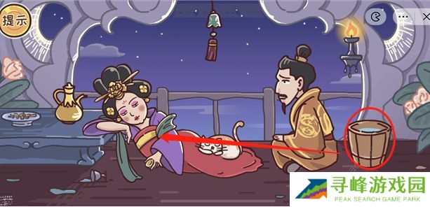 老六别坑了贵妃醉酒攻略1 这一关很简单,要让杨贵妃承认喝醉了,我们先把右边的酒桶拿给杨贵妃喝,连续给她喝2次,喝酒的时候肚子会越来越大,第三次的时候她就喝不下了,我们就可以顺利的通关了。老六别坑了大梦