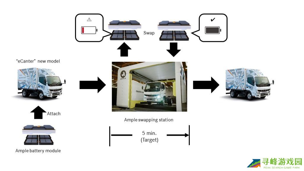 以三菱 eCanter 为例,根据扶桑介绍,该车如使用交流电充电需整晚才能充满,即使用直流快充也要花上一到两小时。此次三菱、三菱扶桑和 Ample 的联合试点,旨在借助换电方式解决这种长时间停机问题,实现几分钟内恢复满电状态,大幅提高车辆出勤率。与此同时,该技术还能构建储能基础设施,在自然灾害时为电网提供应急电力,这也是三菱长期以来在日本的战略重点。
