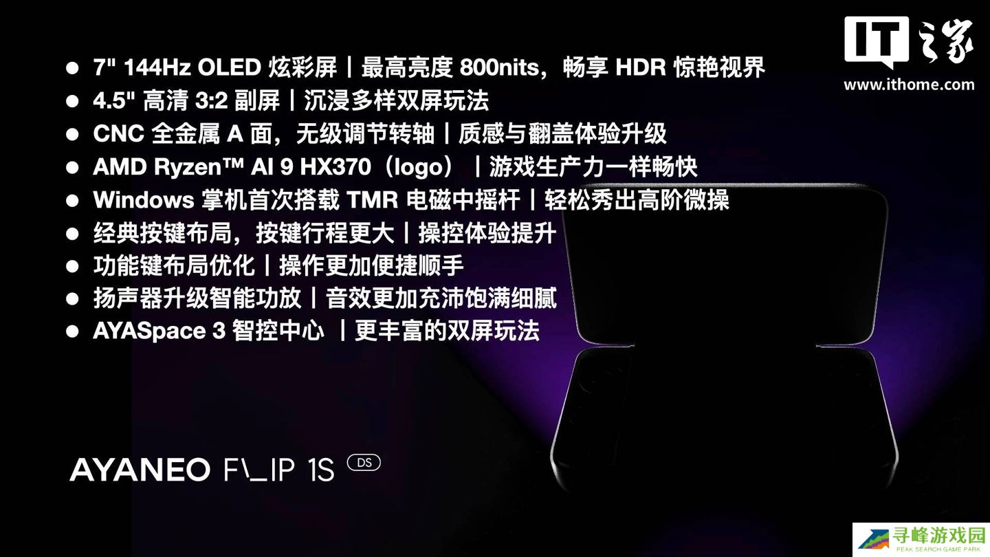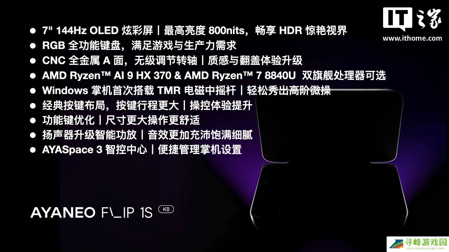 据介绍,AYANEO FLIP 1S 系列主屏升级为 7 英寸 1080P 144Hz OLED 炫彩屏,拥有双百级色域色彩表现和 800nits 全局最高亮度,最高 144Hz 刷新率带来极低响应延迟。