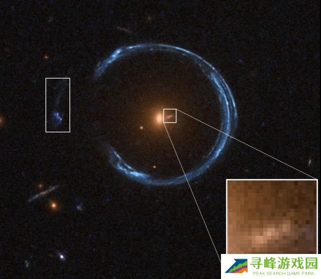 该星系距离地球约 50 亿光年,是目前人类已知质量最大的黑洞之一。该黑洞位于著名的“宇宙马蹄铁”(Cosmic Horseshoe)引力透镜结构中央。