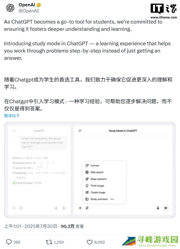 本站 7 月 30 日消息,今天凌晨,OpenAI 宣布推出 ChatGPT 的 Study 学习模式,旨在帮助学生真正掌握知识点,而不仅仅只是完成作业。