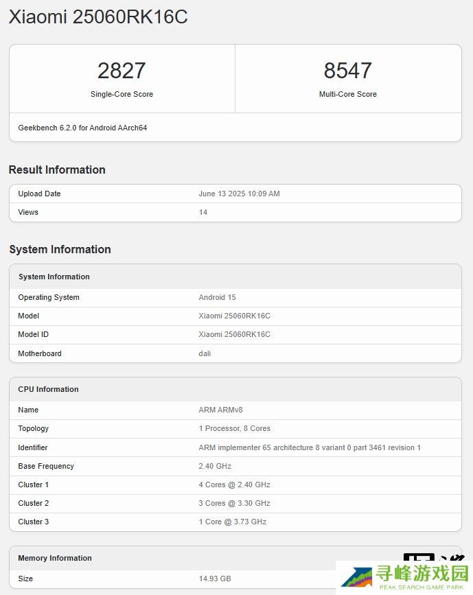 本站 6 月 15 日消息,一款型号为 25060RK16C 的小米新机近日现身跑分平台 Geekbench,预计为 REDMI K80 至尊版。