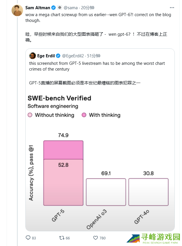 此外针对直播环节吐槽最多的图表问题,奥尔特曼也回应表示搞砸了,本站查询官网博客,显示的图表是正确的。