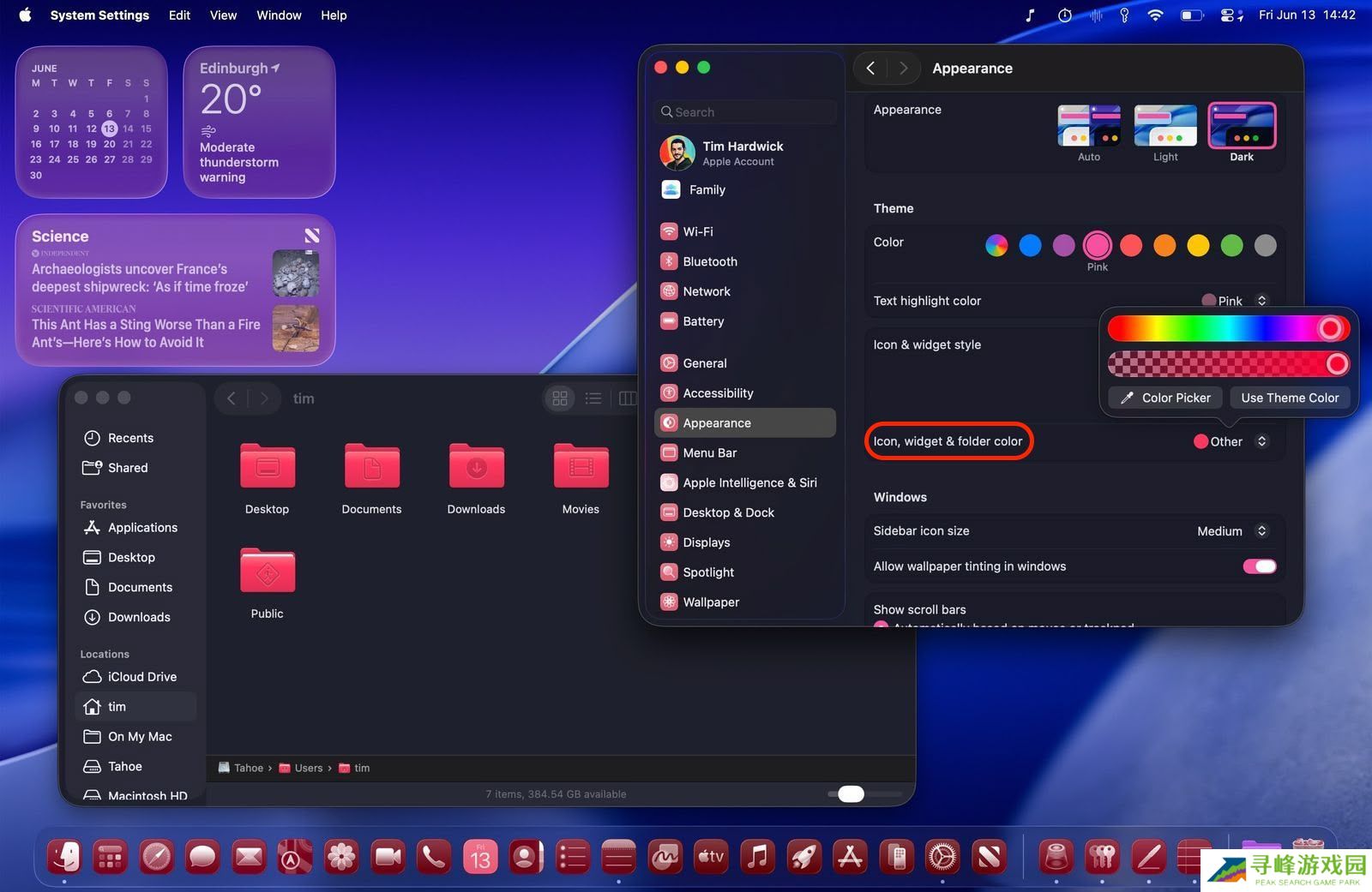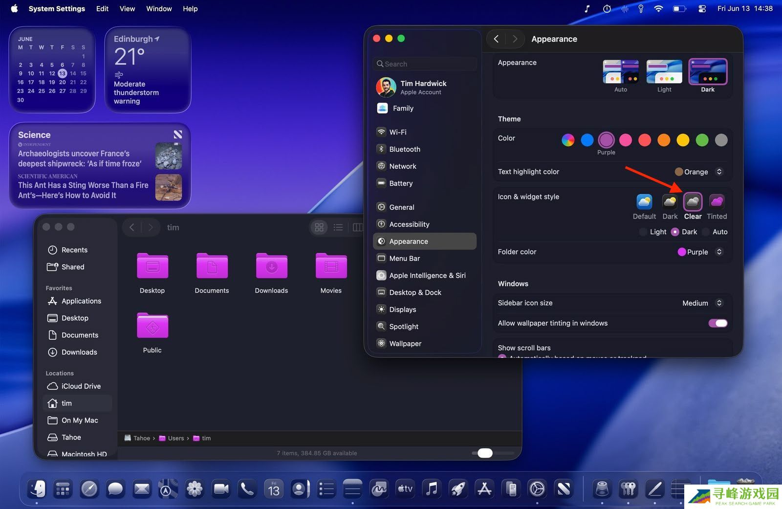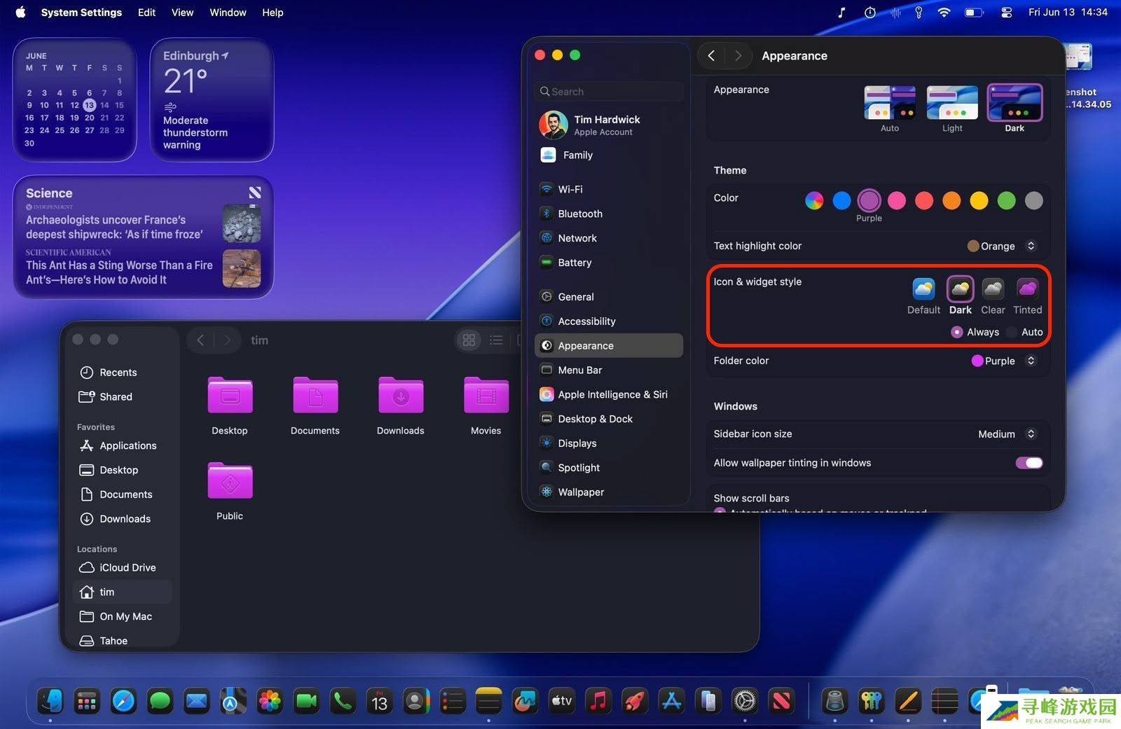 本站 6 月 14 日消息,科技媒体 MacRumors 昨日(6 月 13 日)发布博文,报道称在 macOS 26 Tahoe 中,苹果在现有浅色(Light)和深色(Dark)模式基础上,推出了全新的“Themes”选项,为用户提供了前所未有的桌面外观自定义选项。