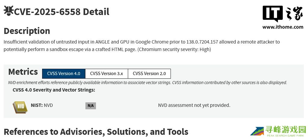 该漏洞追踪编号为 CVE-2025-6558,目前已经有相关证据表明,该零日漏洞已被黑客利用,攻击谷歌 Chrome 浏览器用户。