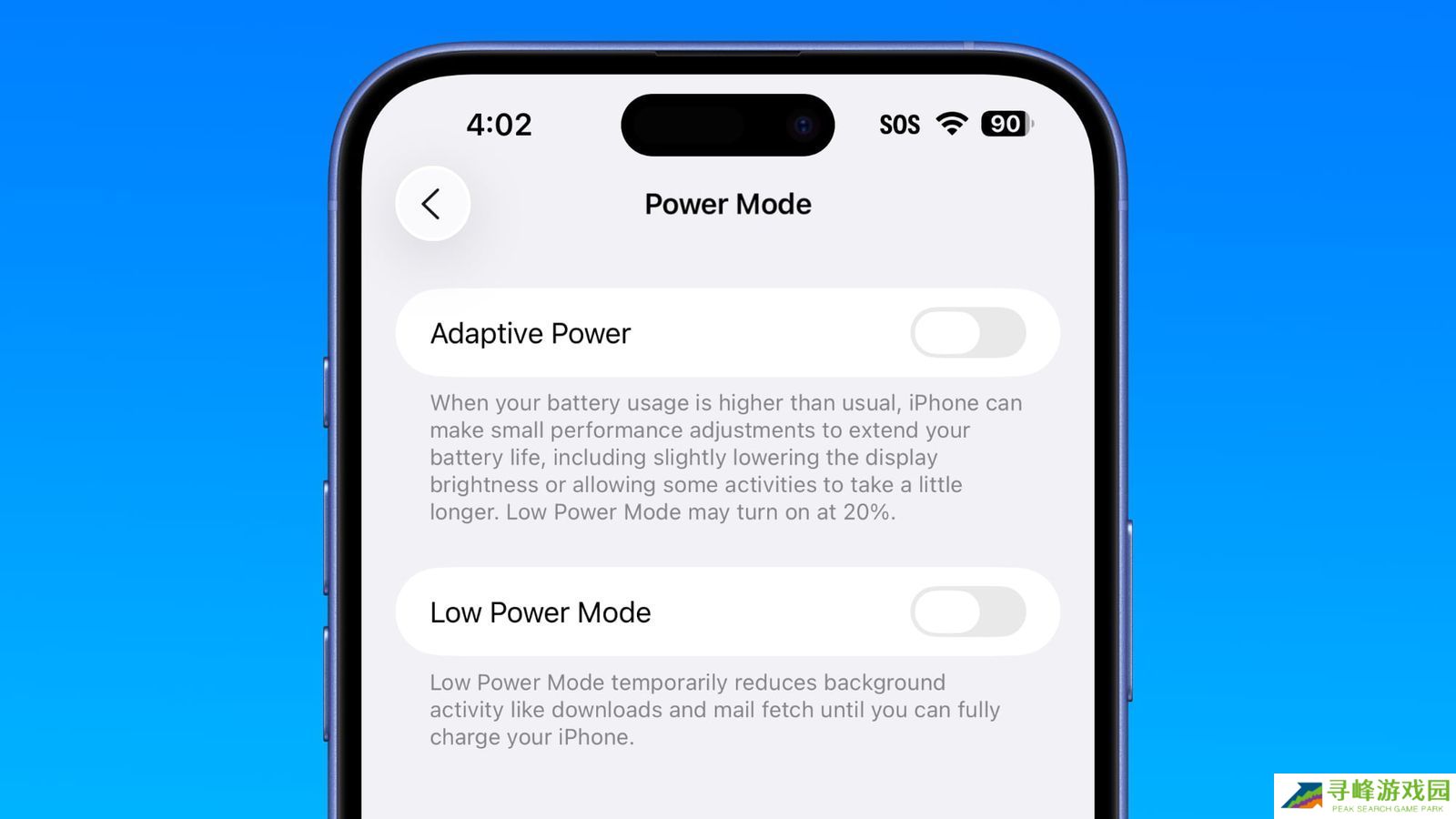 新增的“电源模式”选项允许用户启用低功耗模式(Low Power Mode)或自适应电源模式(Adaptive Power Mode),后者会在检测到高使用率时自动调整性能,通过降低屏幕亮度以延长续航。