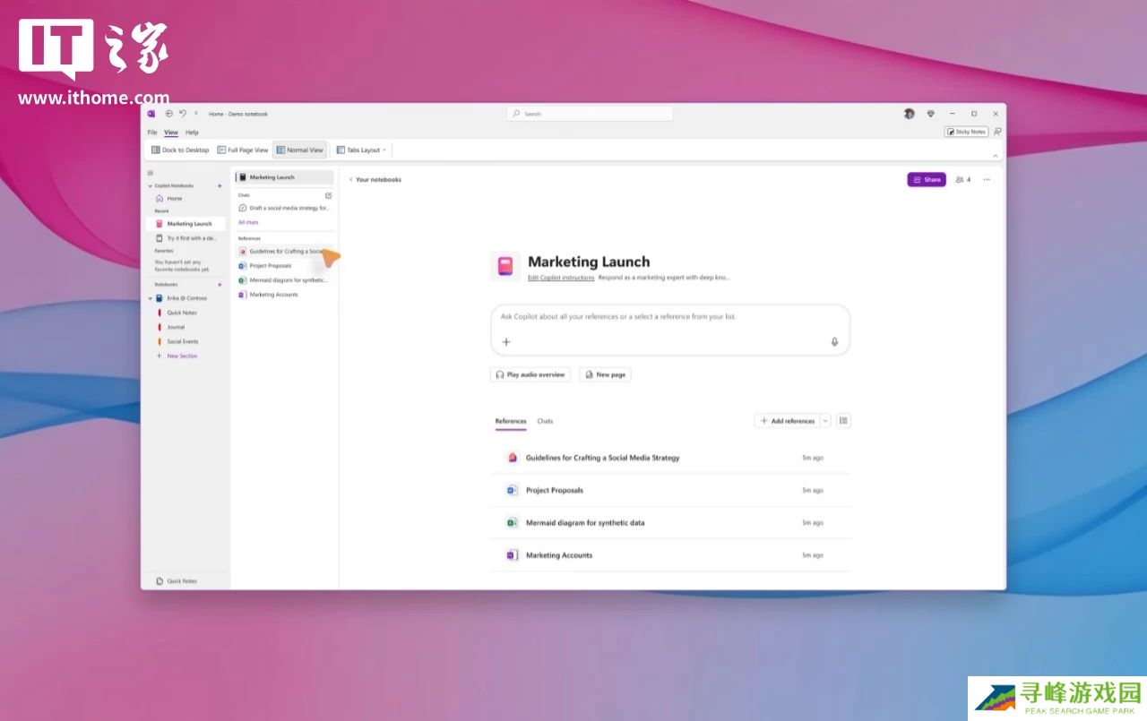 据本站了解,Copilot 笔记本旨在帮助企业用户更轻松地收集内容、理解复杂主题,并创建“更智能的内容”。值得注意的是,这一功能目前仅面向企业用户开放,暂不支持个人或家庭订阅用户。