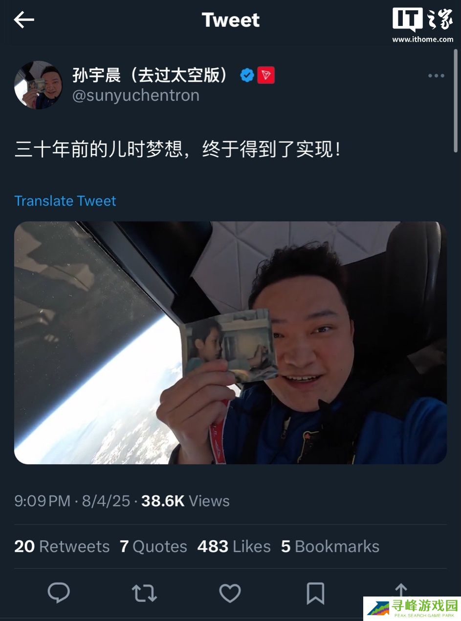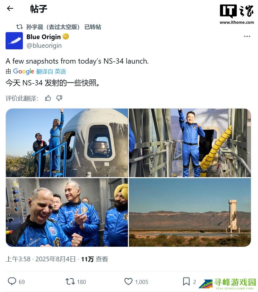 本站 8 月 5 日消息,加密货币平台波场(TRON)联合创始人孙宇晨于 8 月 3 日搭乘蓝色起源(Blue Origin)飞船,完成亚轨道太空飞行,让其成为史上最年轻的华人太空人。