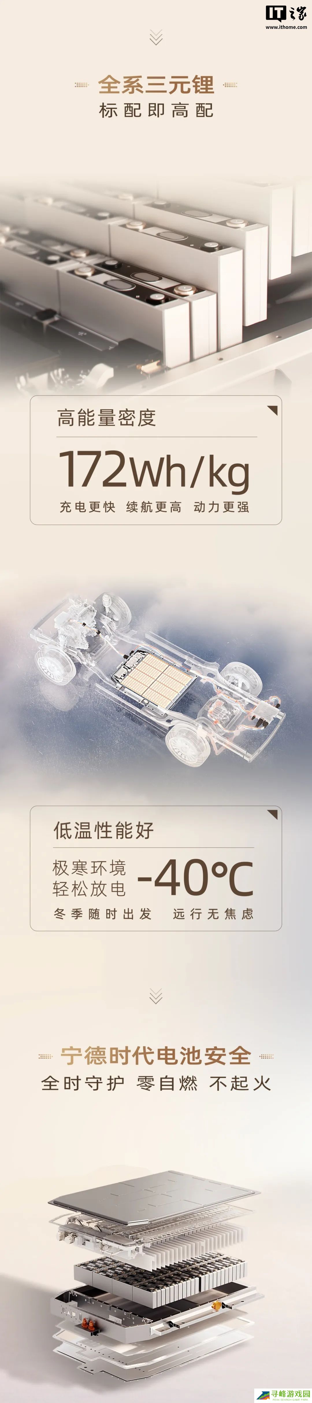 新车支持 3C 超快充,30%-80% 补能时间约 14min。另外,广汽传祺向往 S9 的电池全系为三元锂电池,能量密度 172Wh/kg,支持 -40℃ 极寒环境放电。