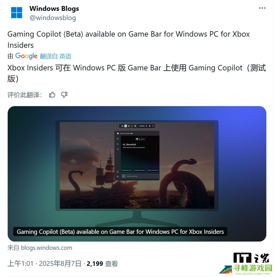本站援引博文介绍,微软于 2025 年 3 月首次透露 Gaming Copilot 功能,这是一款专门为游戏玩家设计的 AI 聊天机器人。该功能也适用于基于 Windows 的游戏掌机,但微软表示,目前功能还比较有限,不过承诺未来将添加更多功能,包括“更丰富的游戏辅助,如主动指导”。