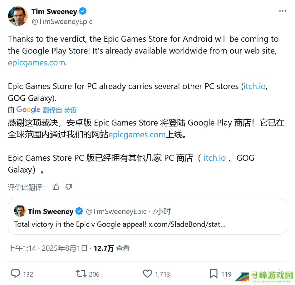 Epic Games 的首席执行官 Tim Sweeney 表示,公司在这次上诉中取得了“全面胜利”。本站附上相关截图如下: