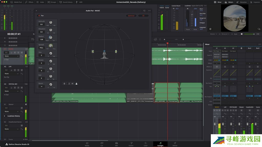 本次更新还原生支持 Apple 空间音频格式(ASAF),支持在 Fairlight 的完整 3D 声道系统中进行沉浸式音频混音。
