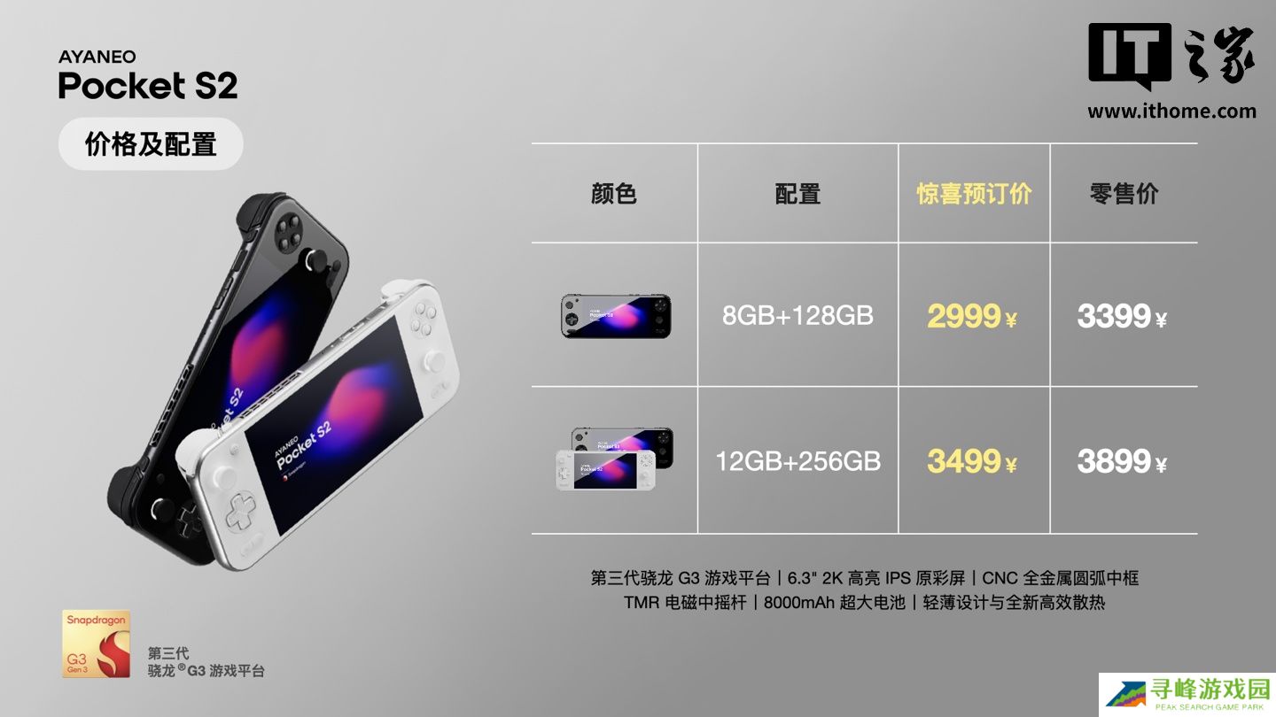 本站附 AYANEO Pocket S2 系列安卓掌机售价、核心配置如下: