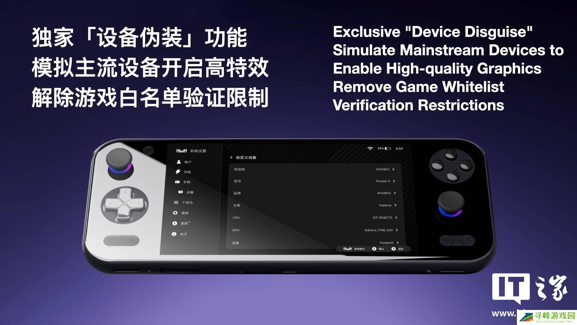 本站从 AYANEO 官方获悉,Pocket S2 系列掌机拥有本地复古游戏管理功能,同时支持桌面个性化设置,适配多场景性能模式、设备伪装、无感按键映射 1.5 等便捷功能。系列掌机支持最新升级的「自定义按键」,可将 LCRC 键映射为 ABXY、LT / RT、LB / RB 等手柄按键。