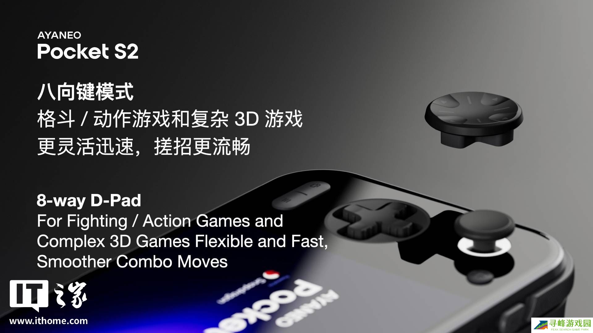 AYANEO Pocket S2 Pro 掌机首创更高自由度的可更换方向键设计,适配FPS 游戏和格斗动作游戏。玩家可以根据不同类型游戏的操作需求,轻松拆卸更换十字键或者八向键,二者均为手感清脆的薄膜微动按键。