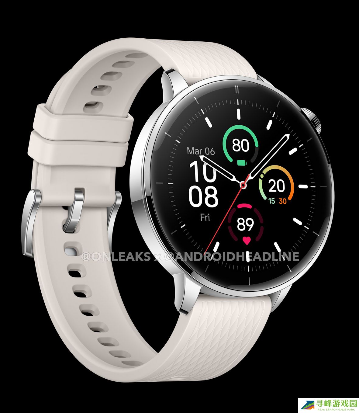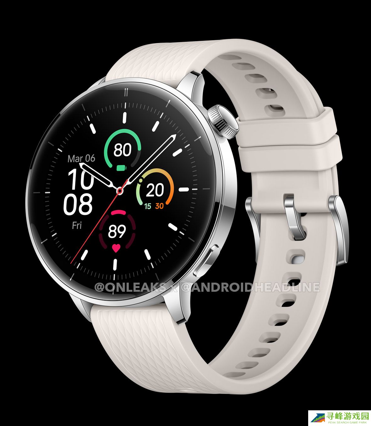 规格方面,43mm 版一加手表 3 配备一块 1.32 英寸 AMOLED 2.5D 显示屏,分辨率为 466×466,手表尺寸为 43mm,相较于 47mm 的 OnePlus Watch 3 更为紧凑。本站附上渲染图如下: