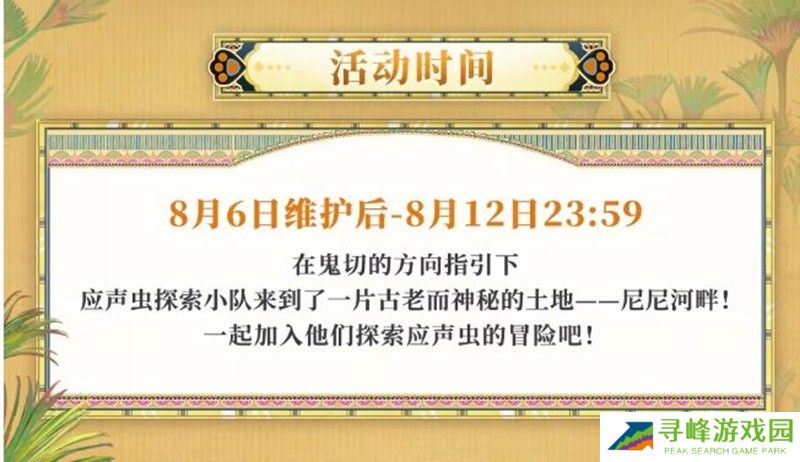 阴阳师手游即将推出全新的“应声虫节”活动,活动时间定于8月6日维护后至8月12日23:59。本次活动将带领玩家进入一个古老而神秘的土地——尼尼河畔,探索应声虫的奥秘。