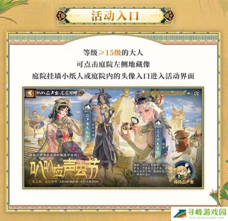 玩家等级达到15级后,可以通过点击庭院左侧的**像、庭院挂墙小纸人或庭院内的头像入口进入活动界面。