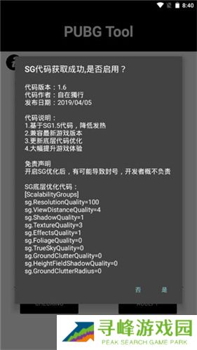 SG代码是基于官方底层模型参数进行优化,可以提升游戏画质,不建议用户开启该功能,可能被封号。