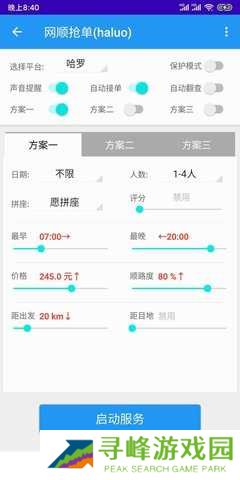 3、根据需求设定自动抢单的顺路程度、座位数和接受时间,点击“开启自动抢单”;