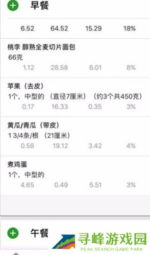 3、可以记录早餐、午餐、晚餐、小食等饮食,包括摄入的食品、分量、热量等信息。