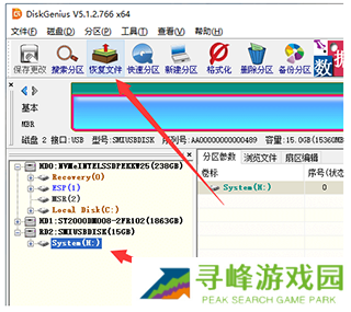 第二步:在软件界面中选中该U盘,点击“恢复文件”按钮。