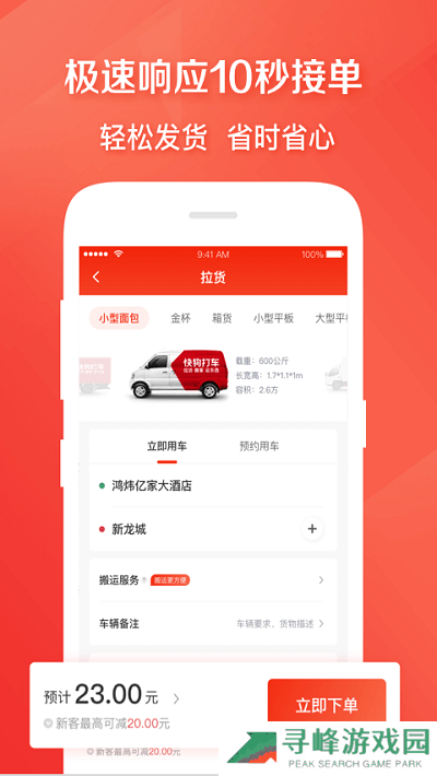 2、手机一键呼叫送货团队,司机10分钟内上门装货,告别路边找车的困扰。