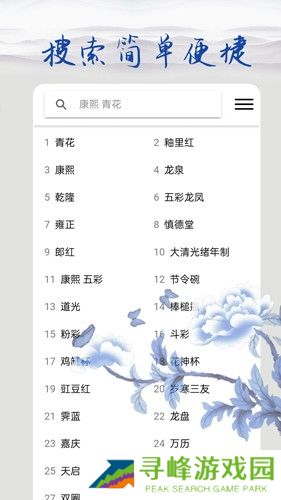 2、输入瓷器名称,即可快速查询到相关的艺术品信息,并进行详细浏览。