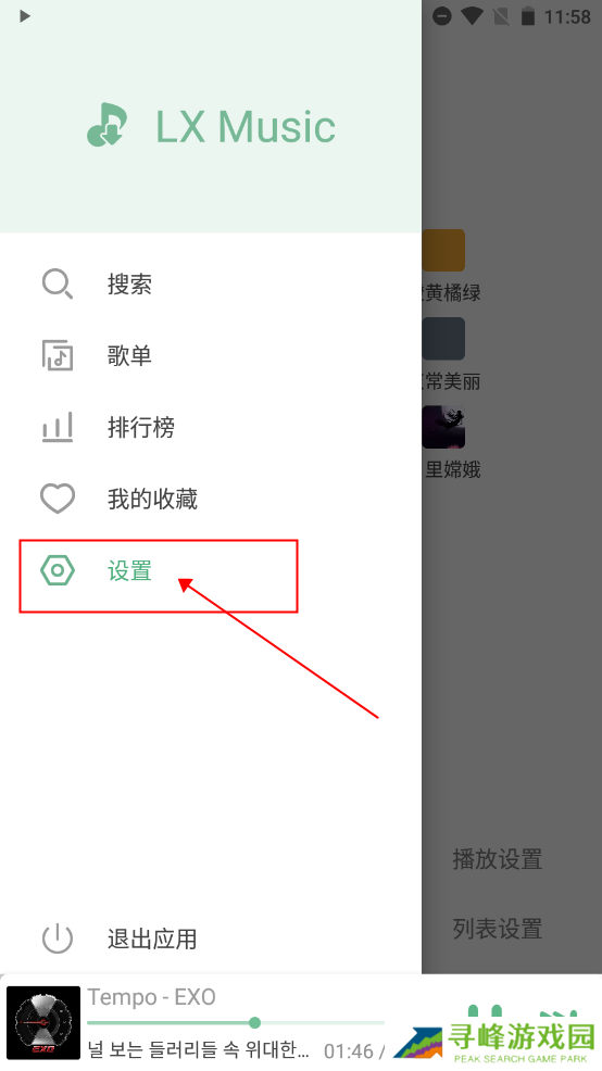6、在设置中即可自由切换主题风格、指定音源平台,并设置播放顺序或随机播放模式