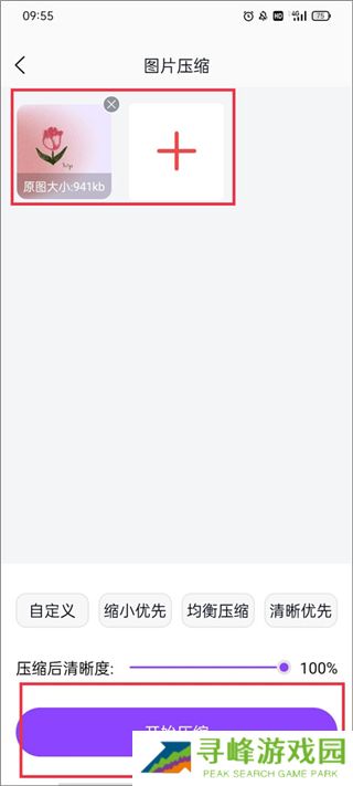 2、从相册中选取需要压缩的照片,也可多选进行批量处理,确认后点击开始压缩按钮,完成后即可保存至本地相册。