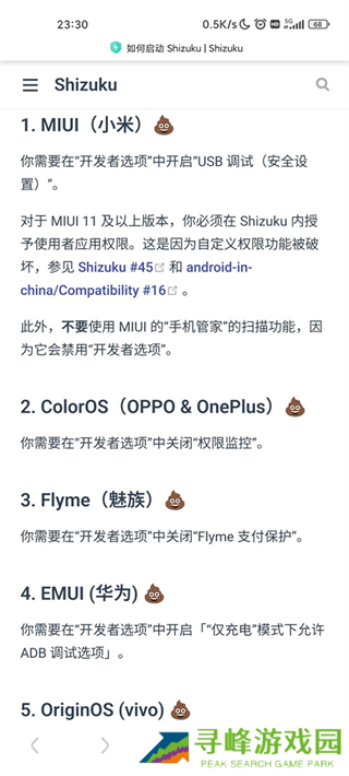 安卓11及以上系统可通过无线调试方式启动Shizuku,具体步骤中有针对主流品牌机型的常见问题解决方案,我们可参照说明处理。