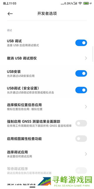 请在“开发者选项”中开启“USB调试(安全设置)”。