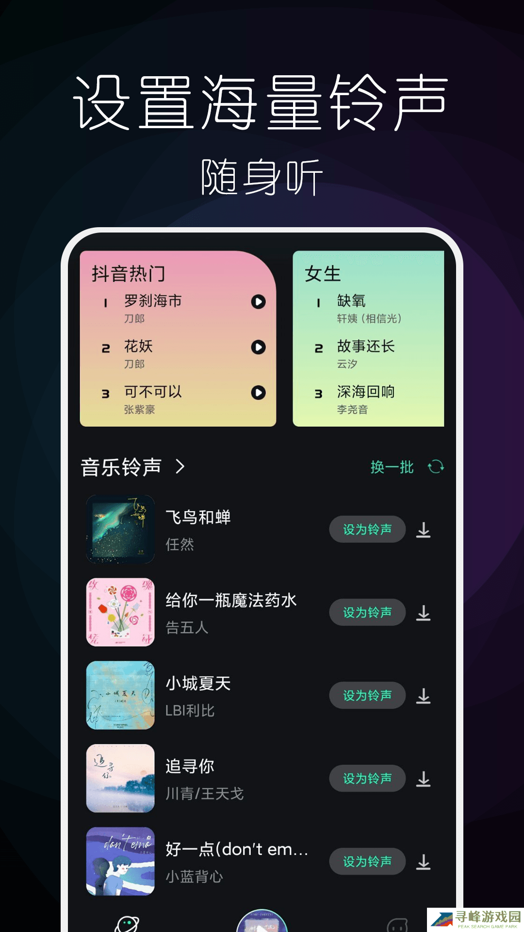 遇见音乐吧将全网好听不火、抖音热门曲目聚集在一起的手机听歌软件,数百为音乐小编深谙现代年轻人们的听歌口味与偏好,从曲库中精心挑选高人气歌手专辑,定制专属歌单曲目,紧跟潮流,用音乐点亮人们的生活。除了音乐之外,还设置有声FM电台版块,助眠、相声、故事等超多有声内容全都能收入囊中,想听什么就听什么。