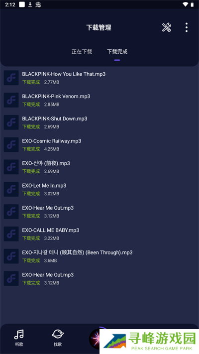 4、还可以前往【管理】页面中的【下载完成】列表中进行查看已经下载好的音乐。