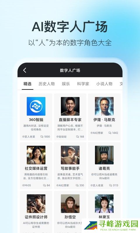 1、内置AI数字人广场,致力打造以人为本的数字角色大全。