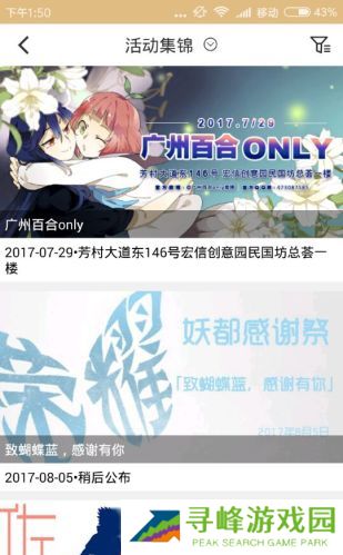 3、检索出各地的漫展以及同号会活动,让游客们有一个详细的活动安排。