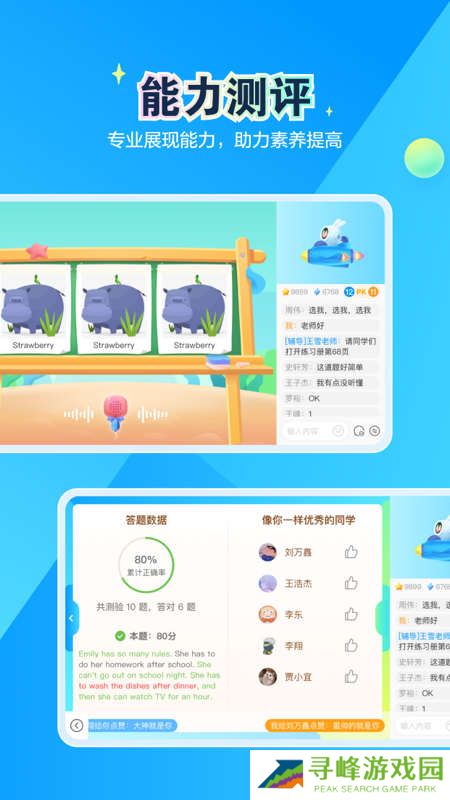 2、针对英语设置智能语音评测,提高发音和口语表达能力。
